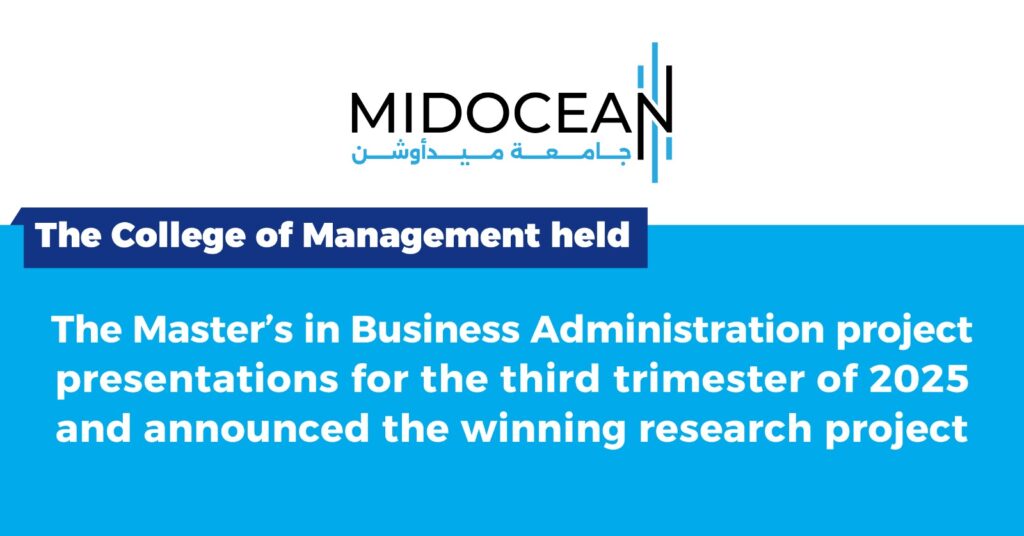 On Thursday, December 25, 2025, the College of Management hosted the graduation project discussion session for the Master’s in Business Administration program, attended by faculty members. The session featured a range of applied academic research studies addressing contemporary issues in management, digital transformation, marketing, quality management, and institutional performance development.